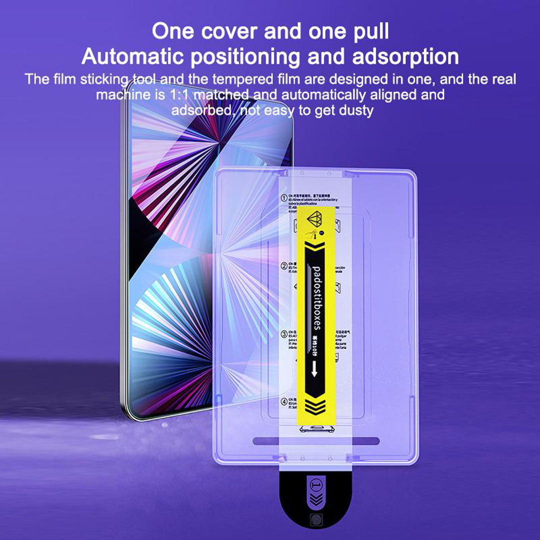 Full-screen HD coverage spans the visible panel edge to edge, so the front camera area supports normal daily use across the compatible range. At the same time, the glass keeps a slim profile over the display, while the alignment tool helps position it straight during fitting. As a result, the protector feels easier to place accurately on the first attempt. In addition, Apple Pencil remains supported on compatible iPad Air and iPad Pro 11-inch models during normal daily use.