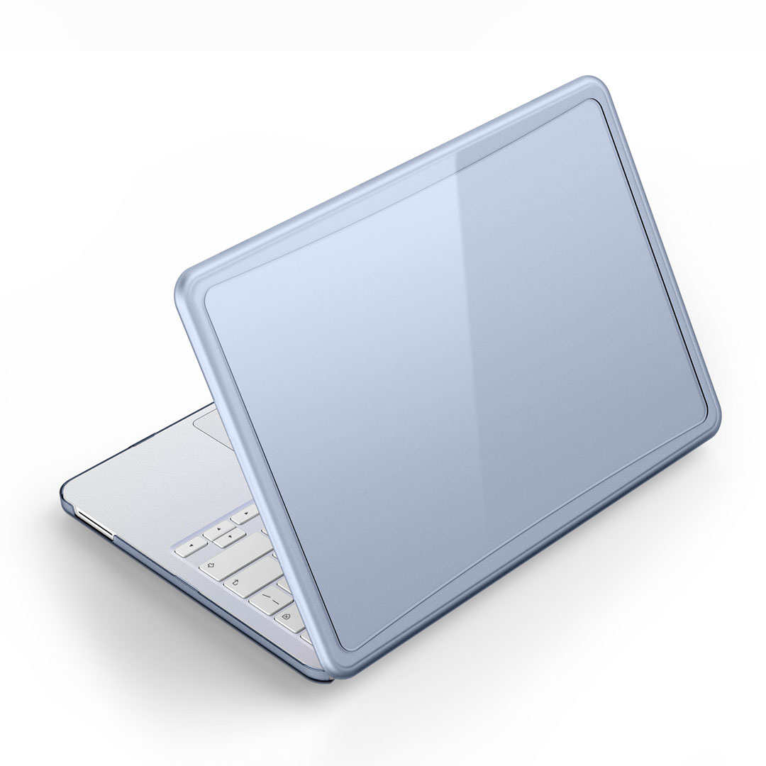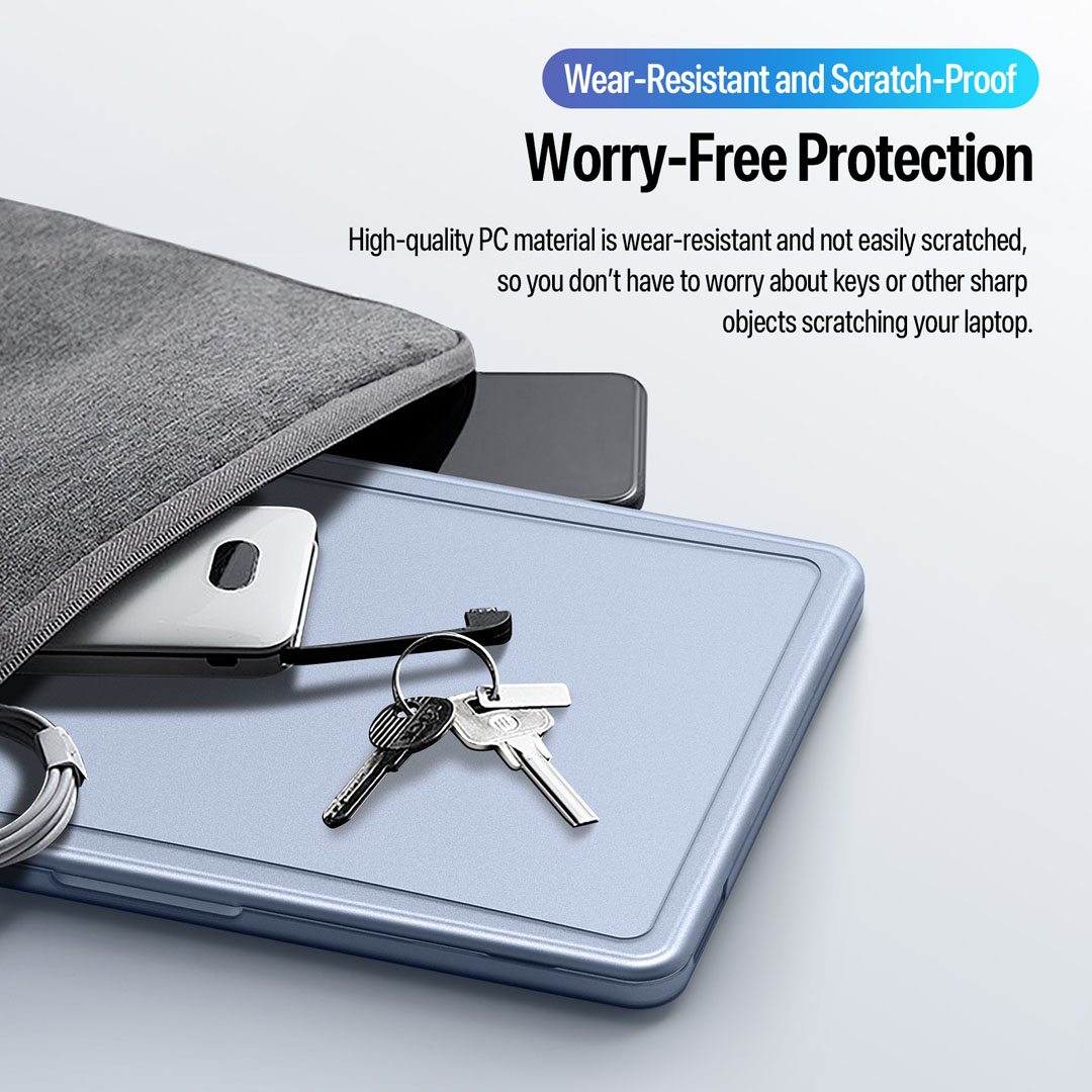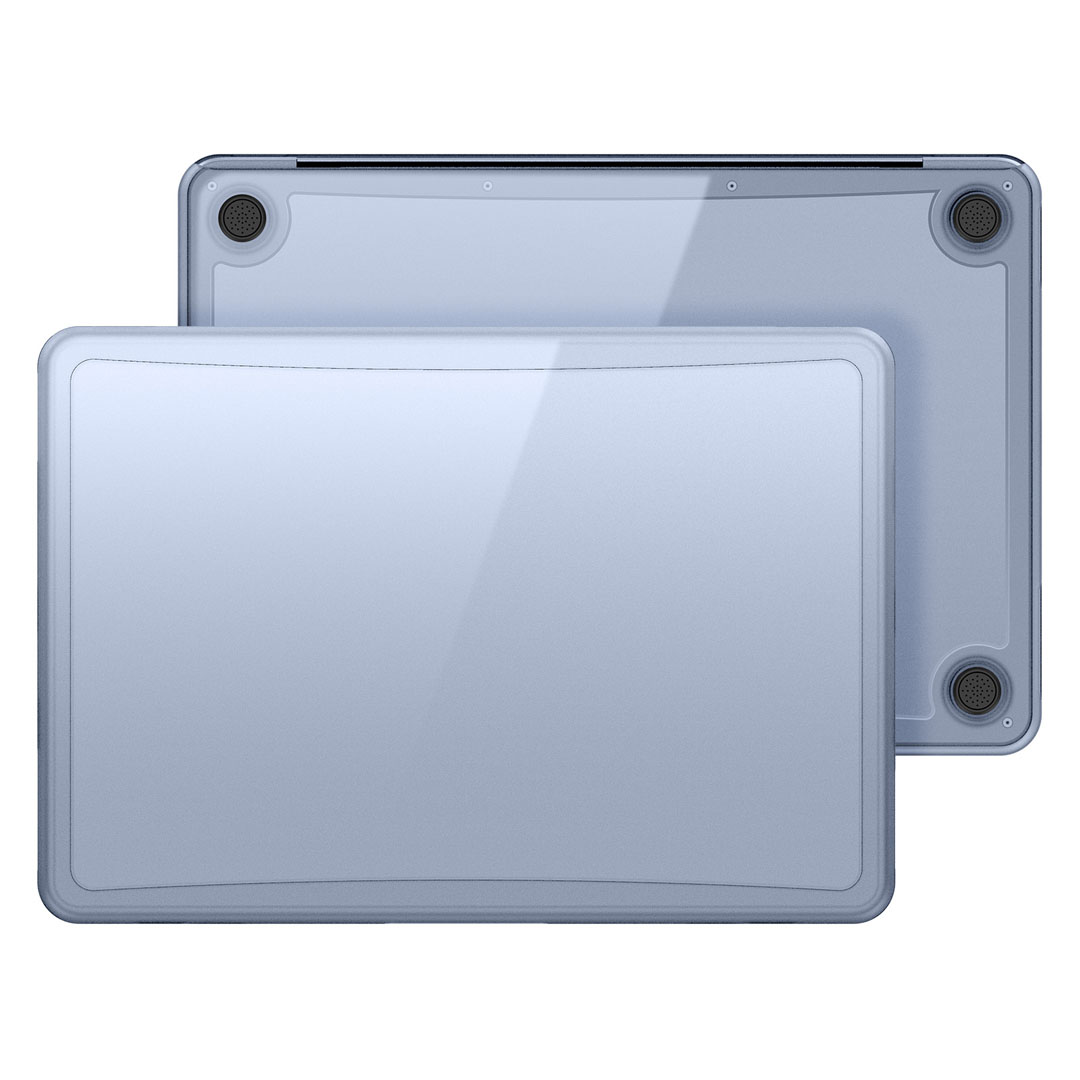 The dual-texture construction separates the coarse matte frame from the fine matte top cover across the two pieces. Furthermore, the coarse frame provides grip during handling while the fine top cover protects the lid surface. The precise cutouts on all sides keep every port, vent, and USB-C connector accessible without case removal. Moreover, the case does not affect the opening and closing angle of the laptop lid during use. The minimalist matte blue design keeps the MacBook Neo profile low during use and storage on any surface.