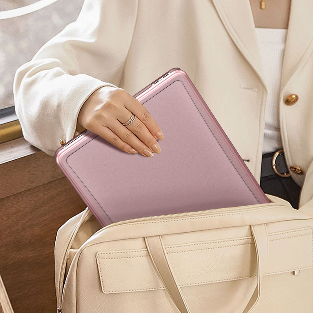 Dux Ducis builds the LCGB Series from hardened PC material in a two-piece snap construction. The coarse matte frame and fine matte top cover clip together through micro-clip points without tools or adhesive. In addition, the matte pink finish covers both pieces consistently across the full surface without colour variance. Consequently, the anti-slip silicone pads at the base keep the Neo 13-inch from sliding on smooth desk surfaces. Furthermore, the cutouts align with both USB-C ports, the headphone jack, and all vents on the A3404. The case adds no obstruction to Wi-Fi 6E or Bluetooth 6 antenna performance on the MacBook Neo. Browse related laptop accessories through laptop accessories.