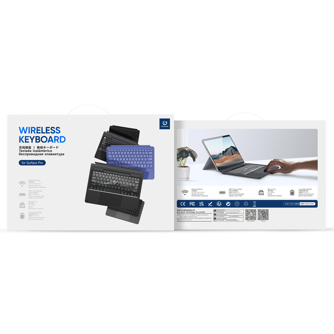 The Microsoft Surface Pro 12 keyboard black by Dux Ducis connects to the tablet magnetically and wirelessly using Bluetooth 5.2, and GA Tech NZ sells the keyboard at gatech.co.nz for customers across New Zealand. The CK Pro series model measures 275 x 198mm and weighs approximately 378 grams. In addition, Dux Ducis builds the 5mm ultra-thin body from PU, ABS and magnet materials with a precision spray-coated surface and a microfibre base. As a result, the keyboard adds minimal bulk to the Microsoft Surface Pro 12 during transport.