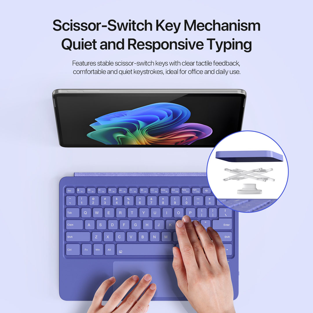 The Microsoft Surface Pro 12 keyboard purple by Dux Ducis connects to the tablet magnetically and wirelessly using Bluetooth 5.2, and GA Tech NZ sells the keyboard at gatech.co.nz for customers across New Zealand. The CK Pro series model measures 275 x 198mm and weighs approximately 378 grams. In addition, Dux Ducis builds the 5mm ultra-thin body from PU, ABS and magnet materials with a precision spray-coated surface and a microfibre base. As a result, the keyboard adds minimal bulk to the Microsoft Surface Pro 12 during transport.