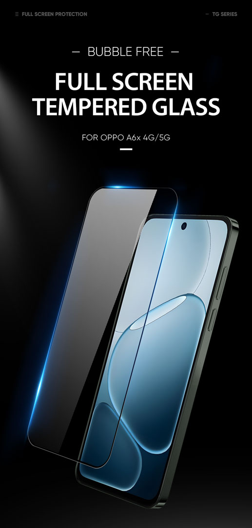 The Dux Ducis OPPO A6x screen protector protects the OPPO A6x display from everyday scratches while keeping the screen clear and responsive. It uses 0.3mm tempered glass, 96% transparency, and an oleophobic anti-fingerprint coating, so it adds daily protection without changing how the display looks or feels.