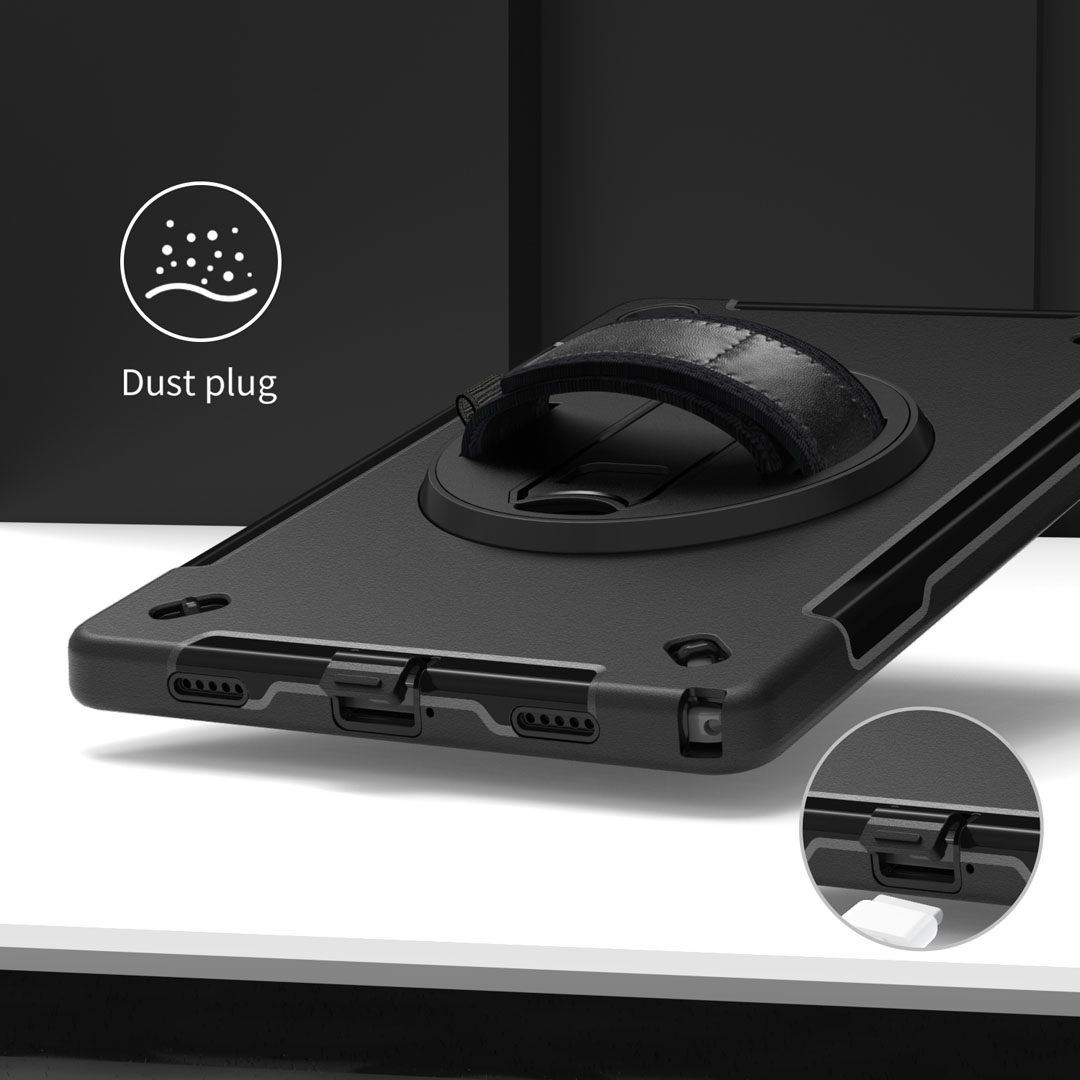 Because the case includes raised edges, the screen and camera gain added protection when the tablet rests on flat surfaces. In addition, the adjustable hand strap allows secure one-handed use while moving, reading, or working.
